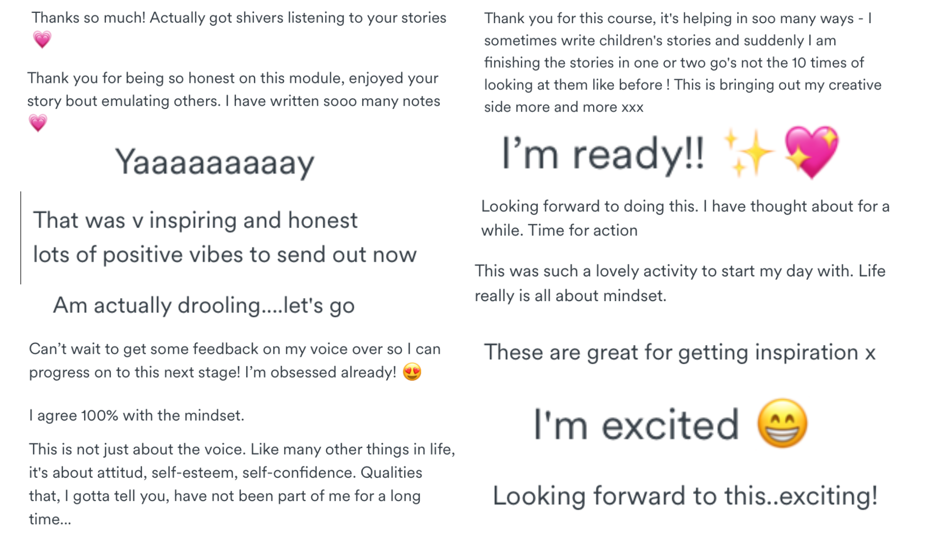 Check out below to learn more about what you’ll get - and take the first step toward becoming the empowered, successful voice artist you were meant to be!